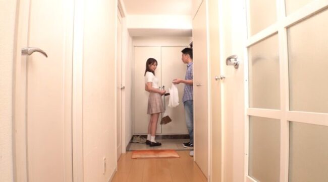じつは、男の部屋を片付けながら、さりげなくパンチラを見せつけていた東條なつ。なかなかの策士。